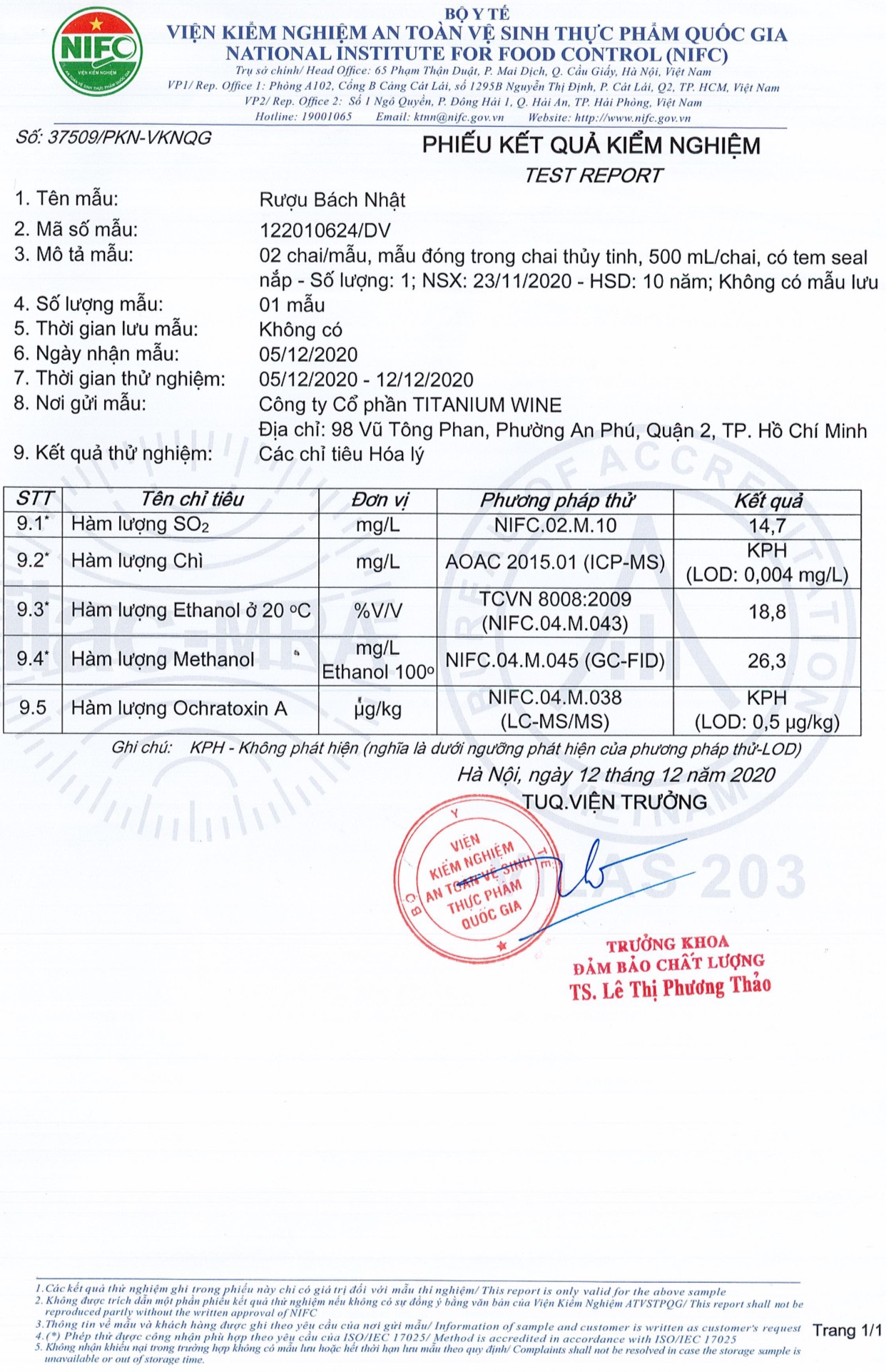 Đạt kiểm nghiệm an toàn vệ sinh thực phẩm Quốc Gia Số: 37509/PKN-VKNQG