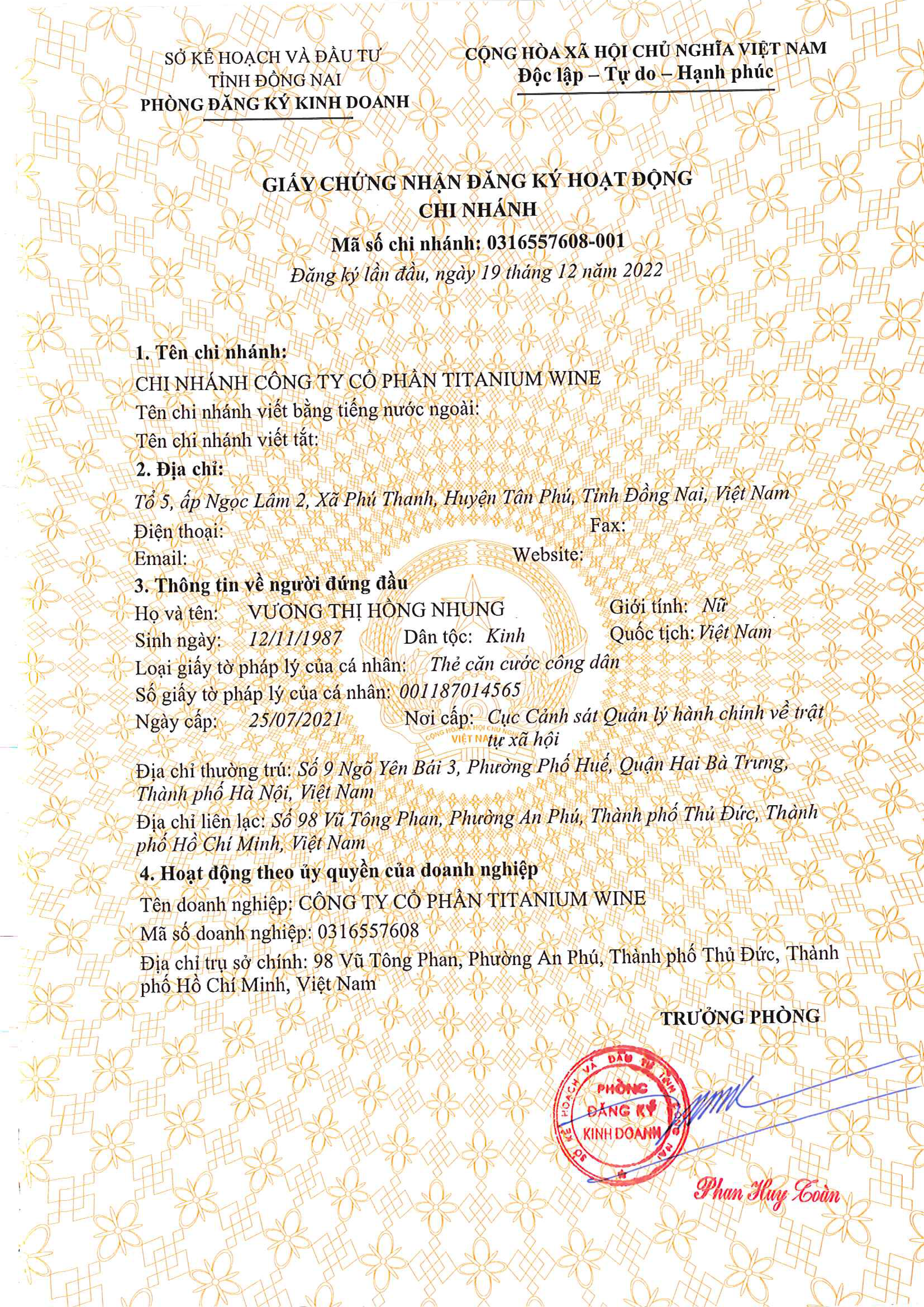 CÔNG TY CỔ PHẦN TITANIUM WINE