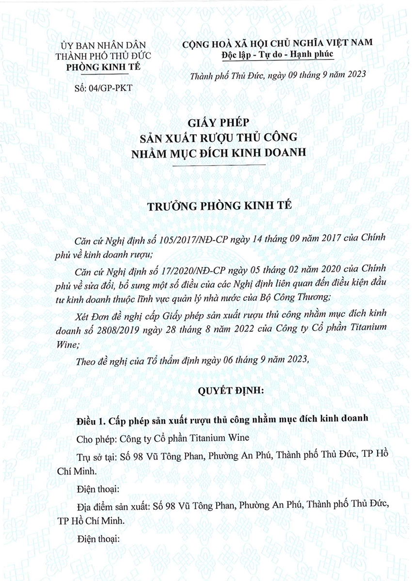 CÔNG TY CỔ PHẦN TITANIUM WINE