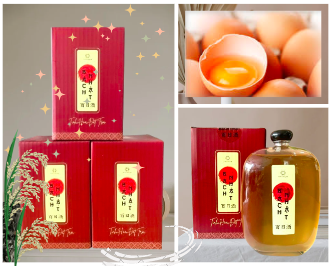 - Rượu Bách Nhật hay rượu Ba Trăng là tên gọi khác của rượu nếp ngâm trứng gà.